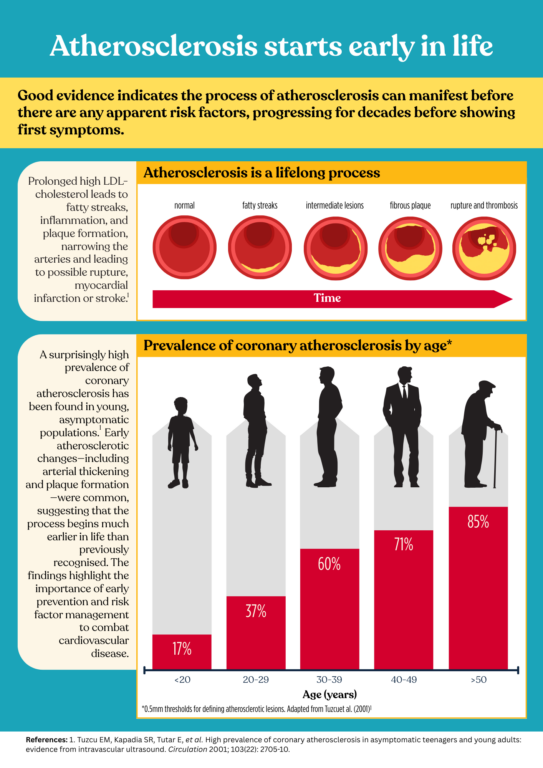 This quick, practical infographic summarises what the evidence tells us about the earlier-than-expected onset of atherosclerosis and the importance of early detection and management of high LDL-cholesterol.